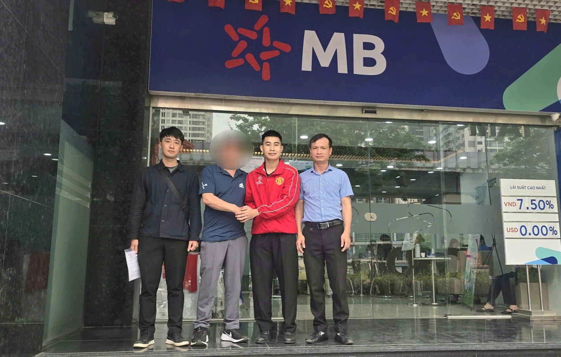 Đến 9h ngày 01/4/2026, cán bộ Công an xã Tân Kỳ trực tiếp hỗ trợ ông T.C.B đến Ngân hàng MB (Chi nhánh Thanh Xuân, TP. Hà Nội) làm việc với các bên liên quan. Dưới sự chứng kiến và hướng dẫn của lực lượng Công an, ông B đã nhận lại đủ số tiền 450 triệu đồng.