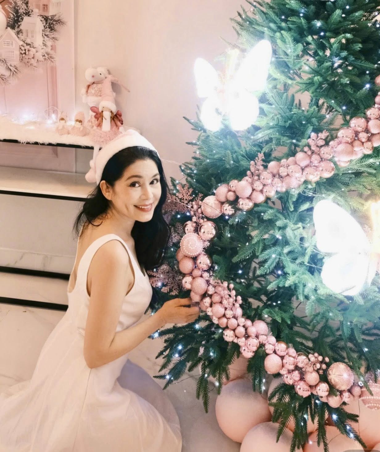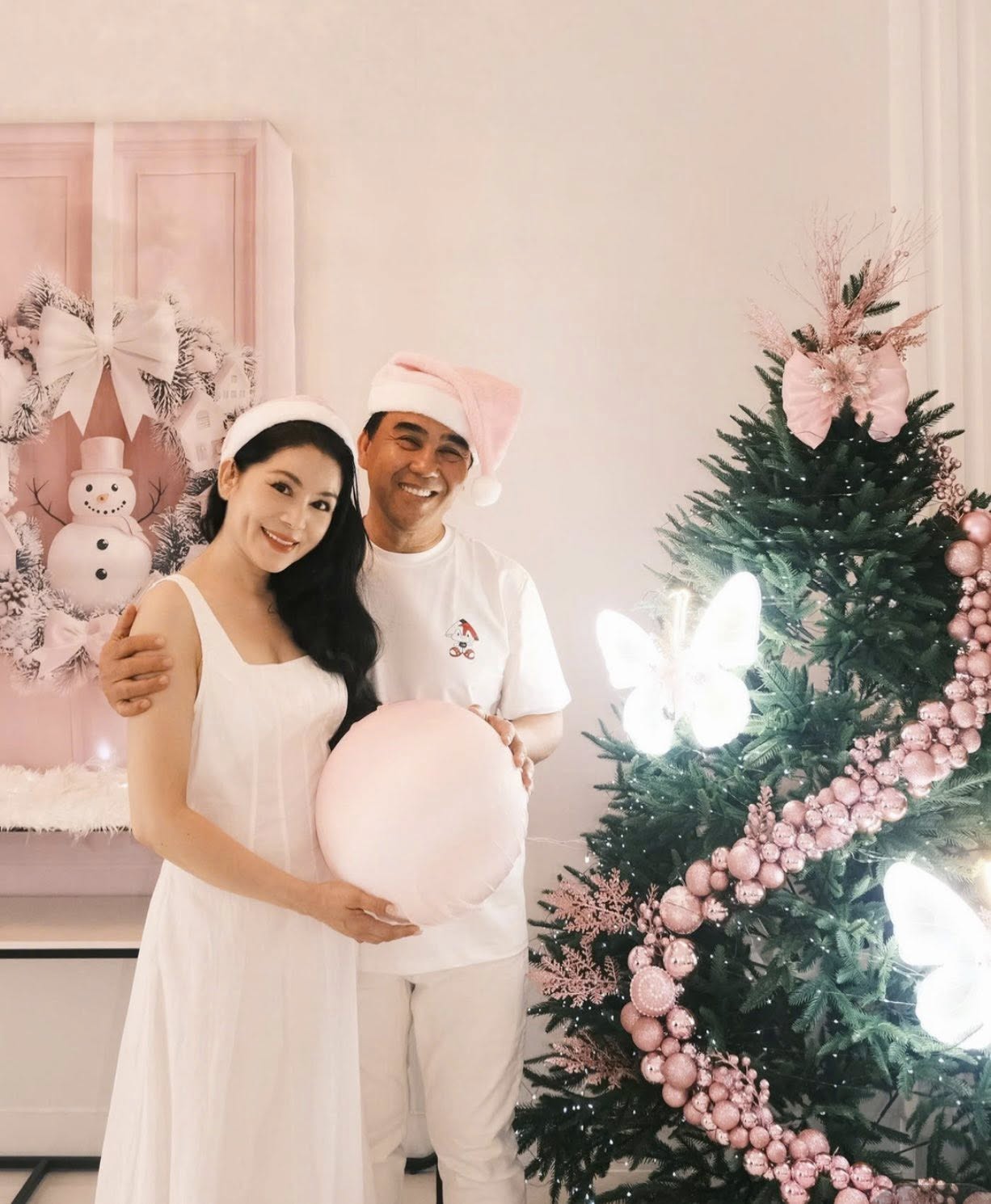 Trong loạt ảnh Giáng sinh mới được chia sẻ, gia đình Quyền Linh lựa chọn concept nhẹ nhàng với tông màu trắng, hồng pastel chủ đạo. Không gian trang trí tinh tế, cây thông Noel được điểm xuyết bằng ánh đèn lung linh và phụ kiện ngọt ngào, càng làm nổi bật vẻ đẹp nền nã của các thành viên. Giữa khung hình ấm áp ấy, doanh nhân Dạ Thảo thu hút ánh nhìn bởi phong thái dịu dàng, nụ cười hiền hậu và thần thái đằm thắm rất riêng.