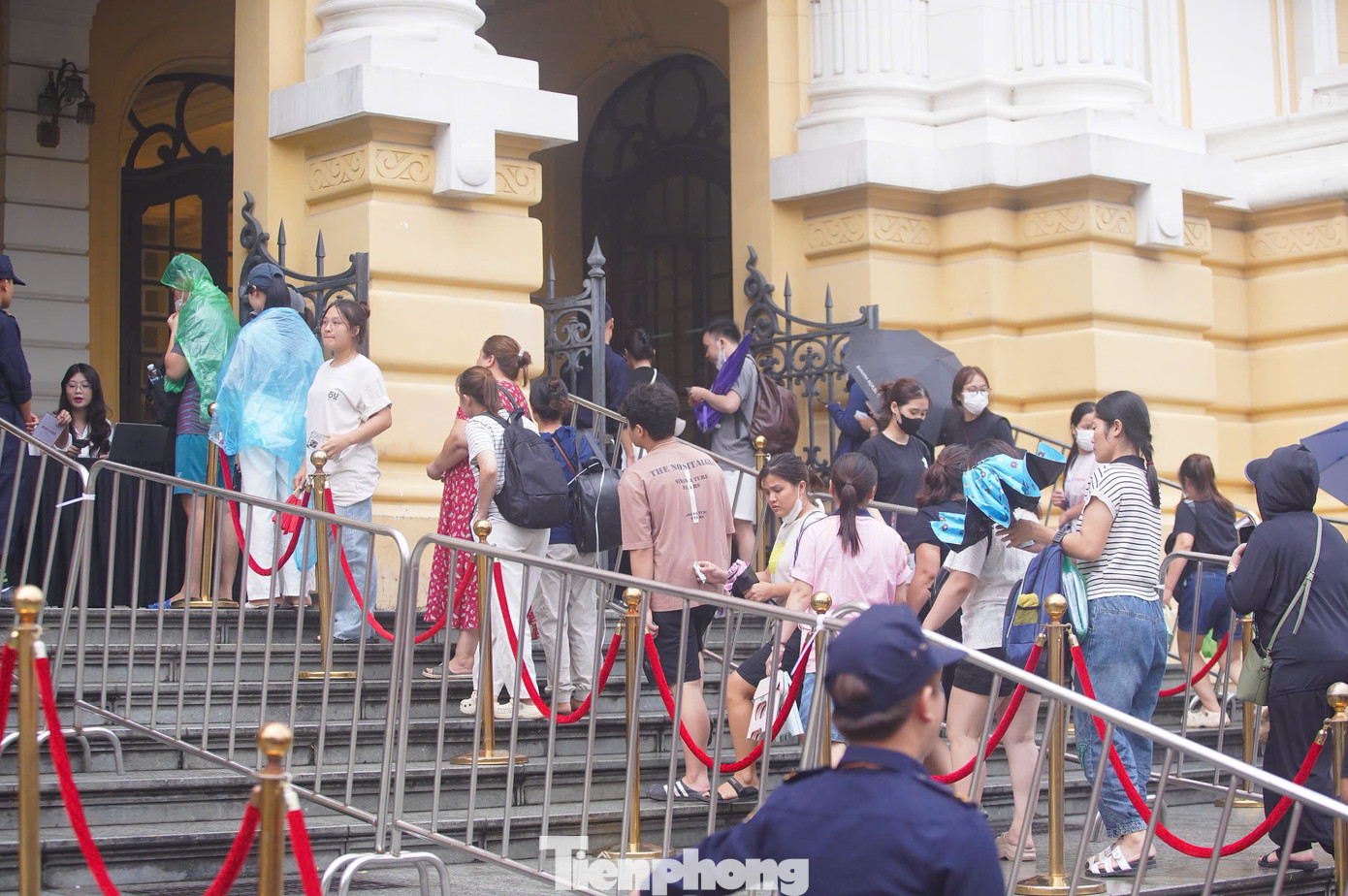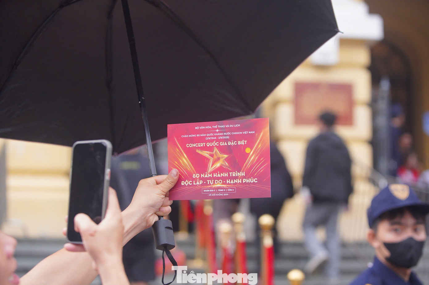 Vé xem concert quốc gia đặc biệt với chủ đề 80 năm hành trình Độc lập - Tự do - Hạnh phúc dự kiến được phát miễn phí tại Nhà hát Lớn Hà Nội từ 9h sáng 29/8. Tuy nhiên, do lượng người đổ về quá đông, ban tổ chức đã mở cổng phát vé từ 8h sáng. Mỗi người dân chỉ được nhận duy nhất một vé.