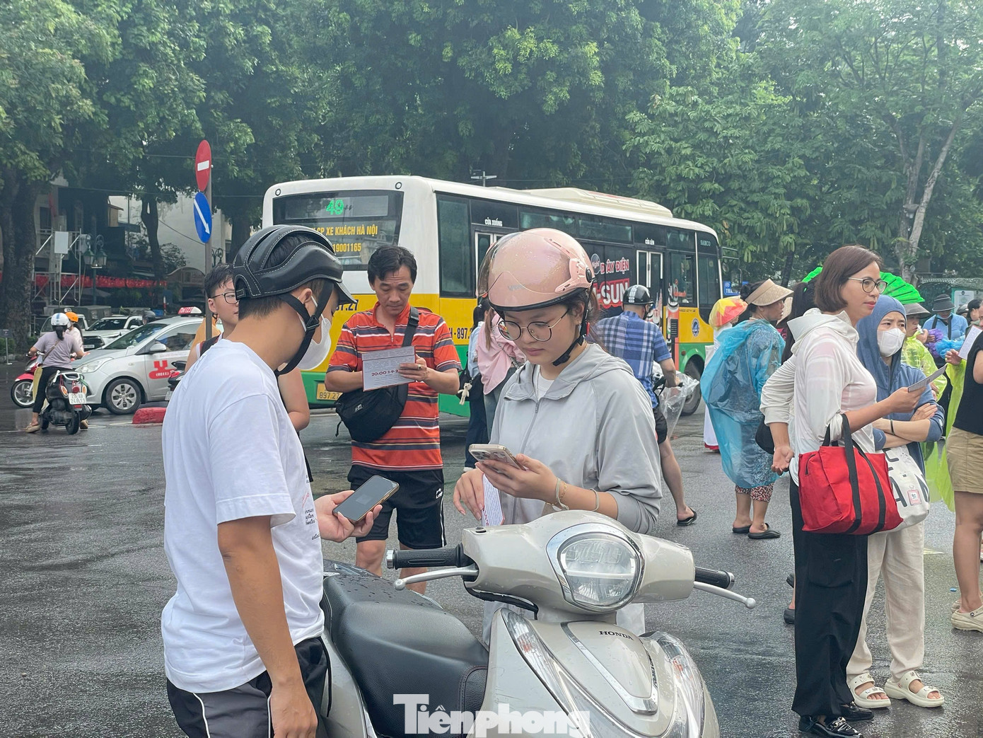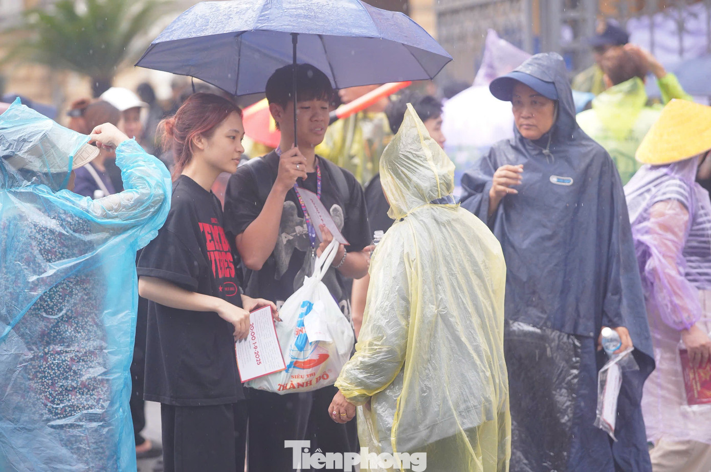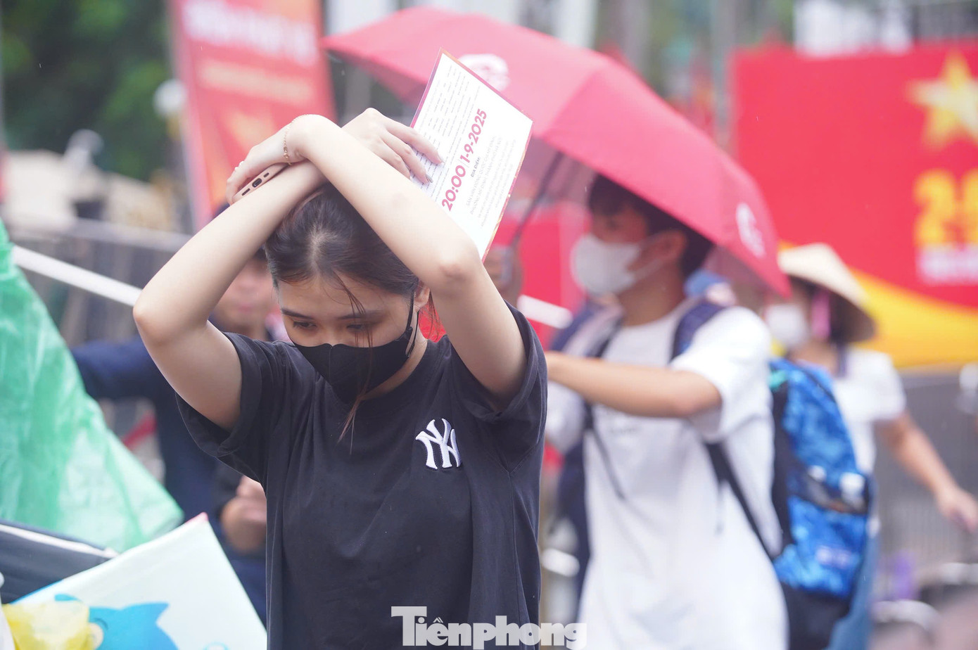Ngay sát giờ phát vé, trời bất ngờ đổ mưa lớn, khiến nhiều người không kịp xoay xở.