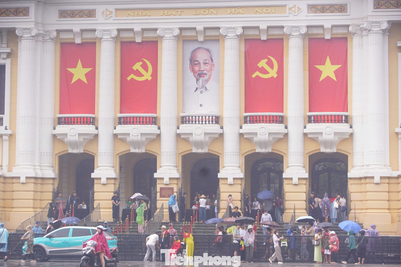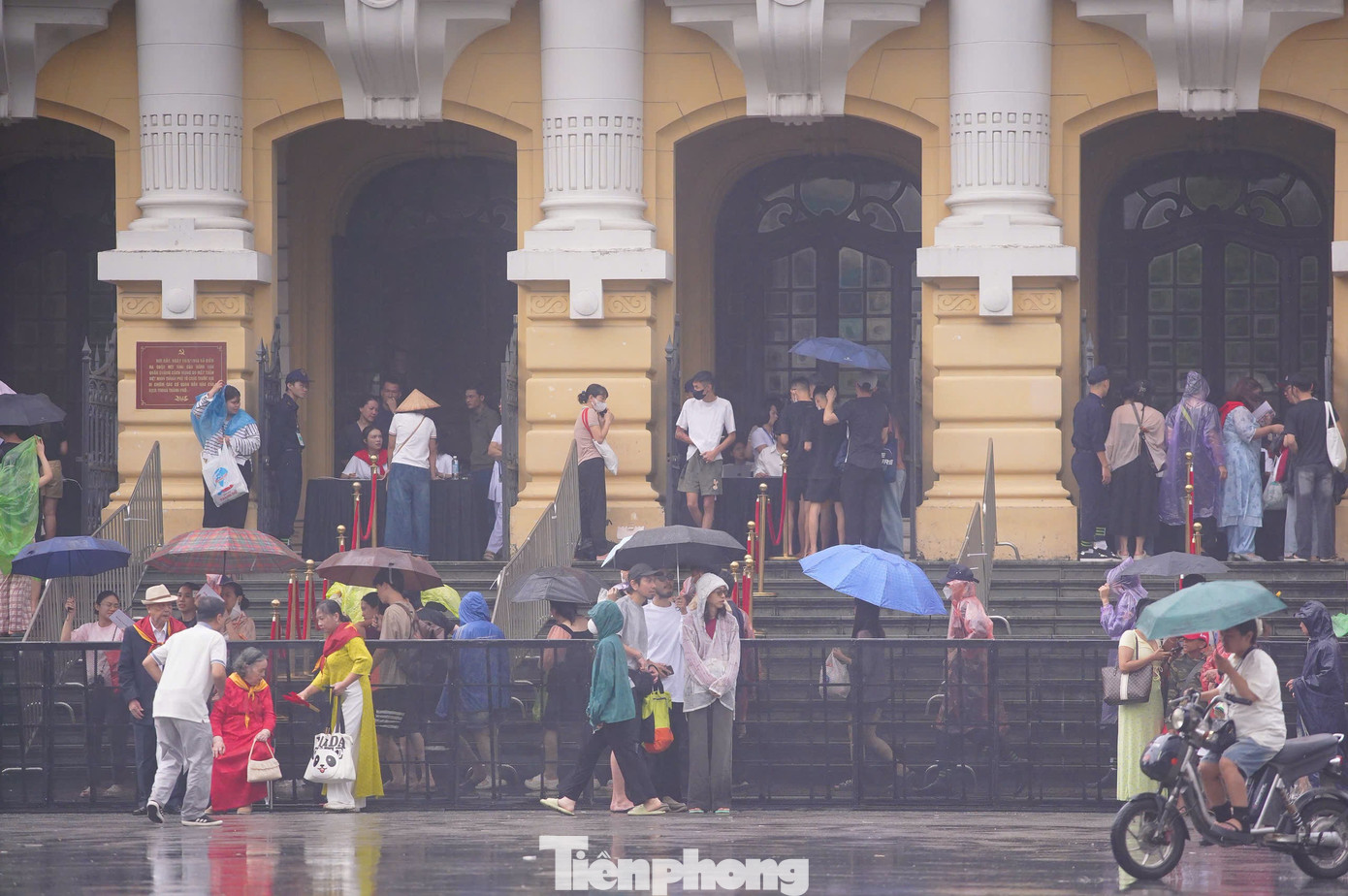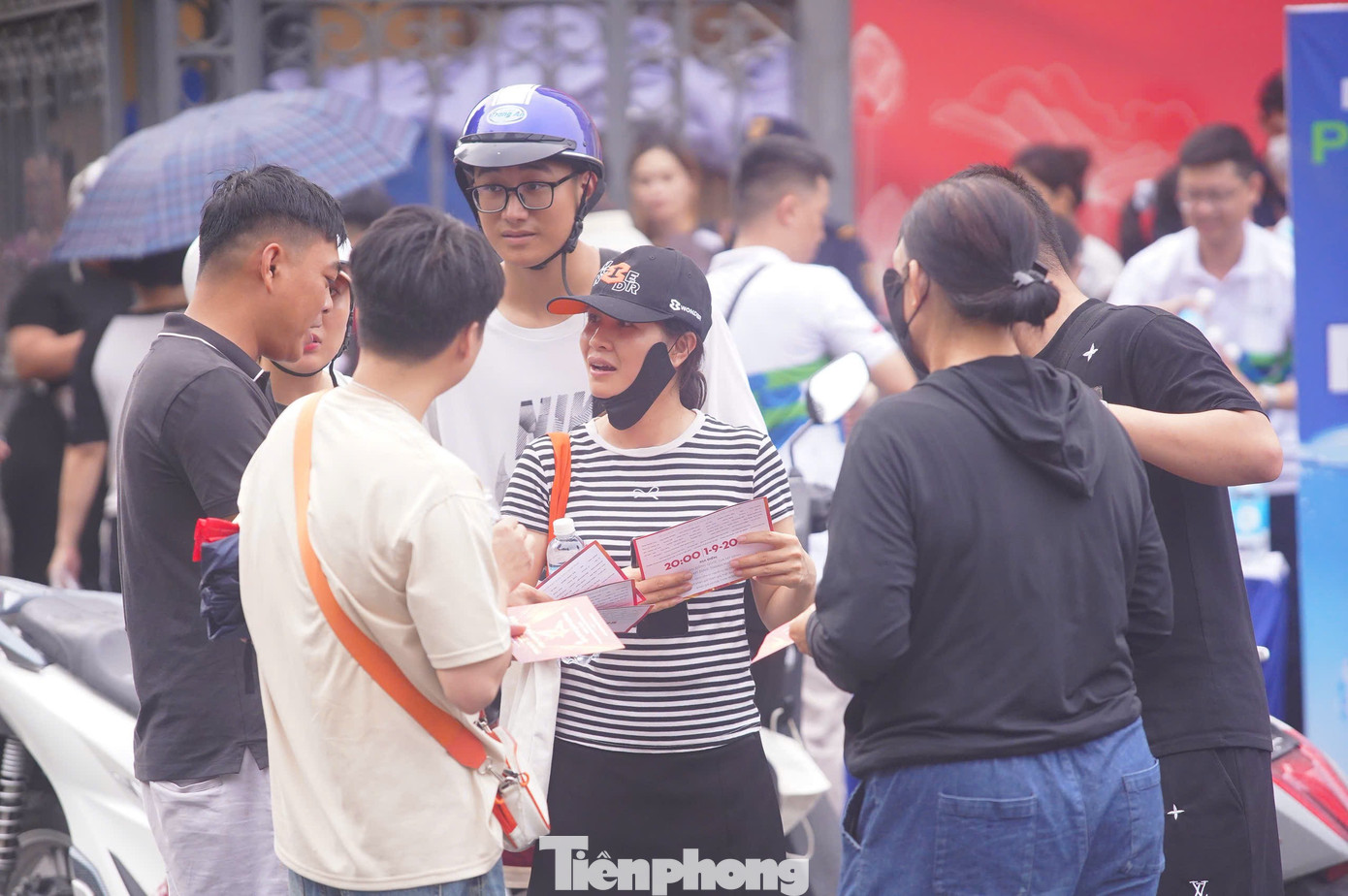 Ngay sát giờ phát vé, trời bất ngờ đổ mưa lớn, khiến nhiều người không kịp xoay xở.