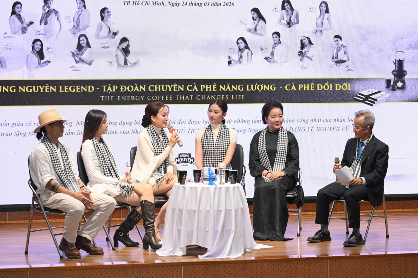 Dưới sự dẫn dắt của PGS.TS Trần Hữu Đức - Giám đốc Đào tạo, Tập đoàn Trung Nguyên Legend, buổi giao lưu diễn ra sôi nổi với nhiều câu chuyện thực tế và góc nhìn đa chiều từ các khách mời, mang đến cho sinh viên những bài học ý nghĩa về học tập, lập thân, lập nghiệp và trách nhiệm với cộng đồng.