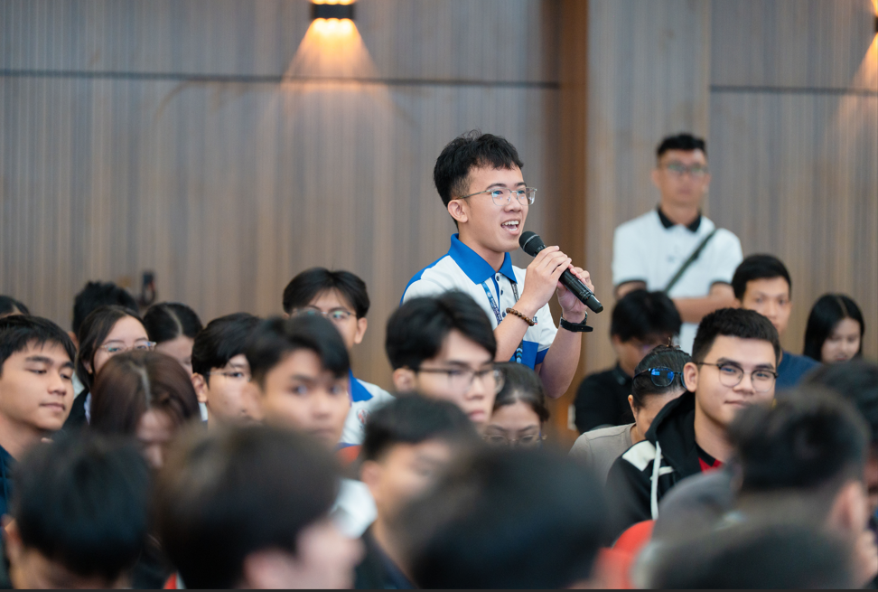 Sinh viên trường Đại học Công nghệ Kỹ thuật TPHCM chăm chú lắng nghe những chia sẻ từ khách mời