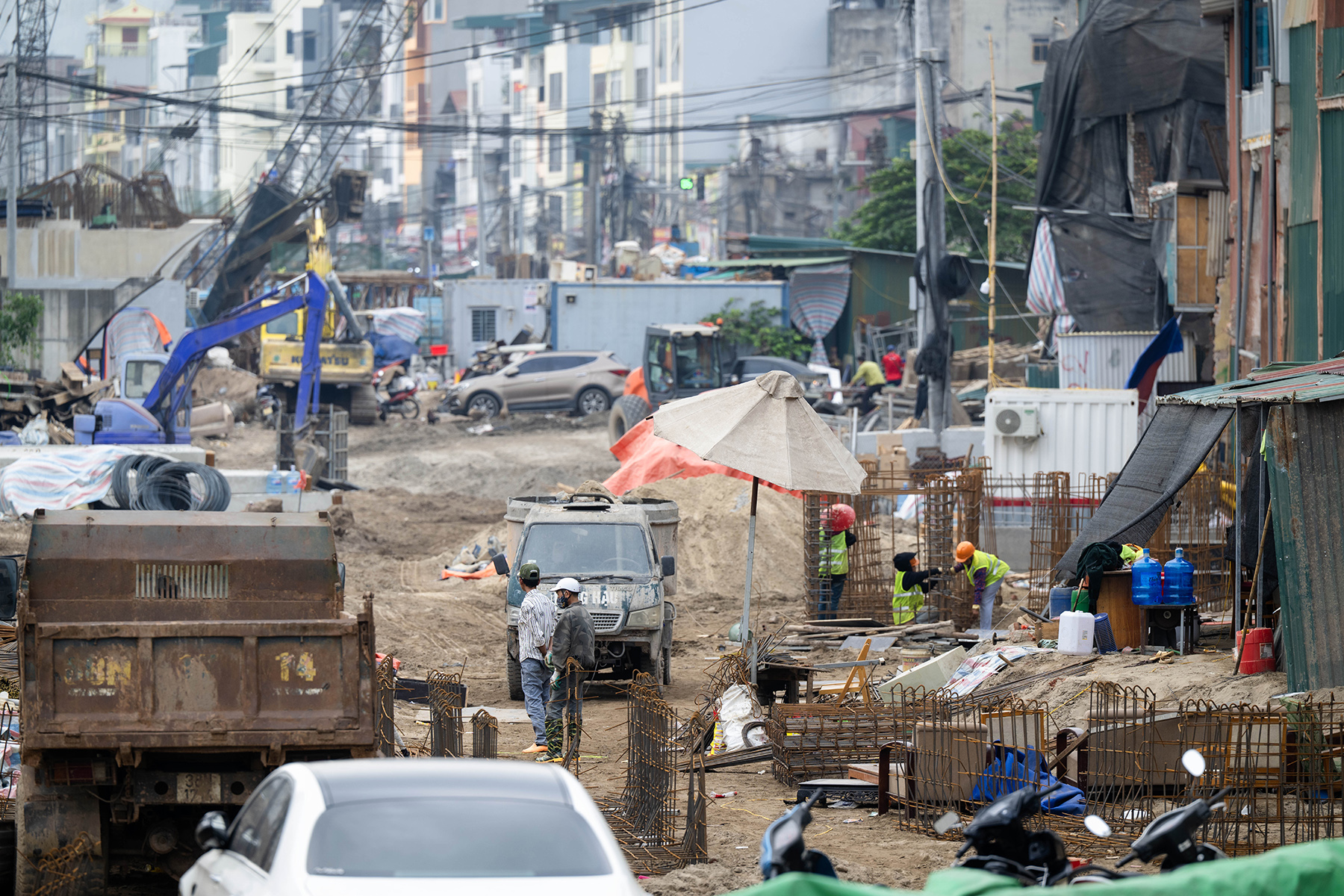 Những người dân mỗi ngày di chuyển qua đoạn đường này thấy rõ sự chuyển biến liên tục của công trường tuyến đường Vành đai 1, khi từng hạng mục dần được hoàn thiện, mang lại diện mạo mới cho khu vực.