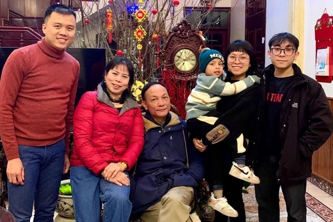 Hữu Trí (bên phải ngoài cùng) và chị gái Ngọc Trang.