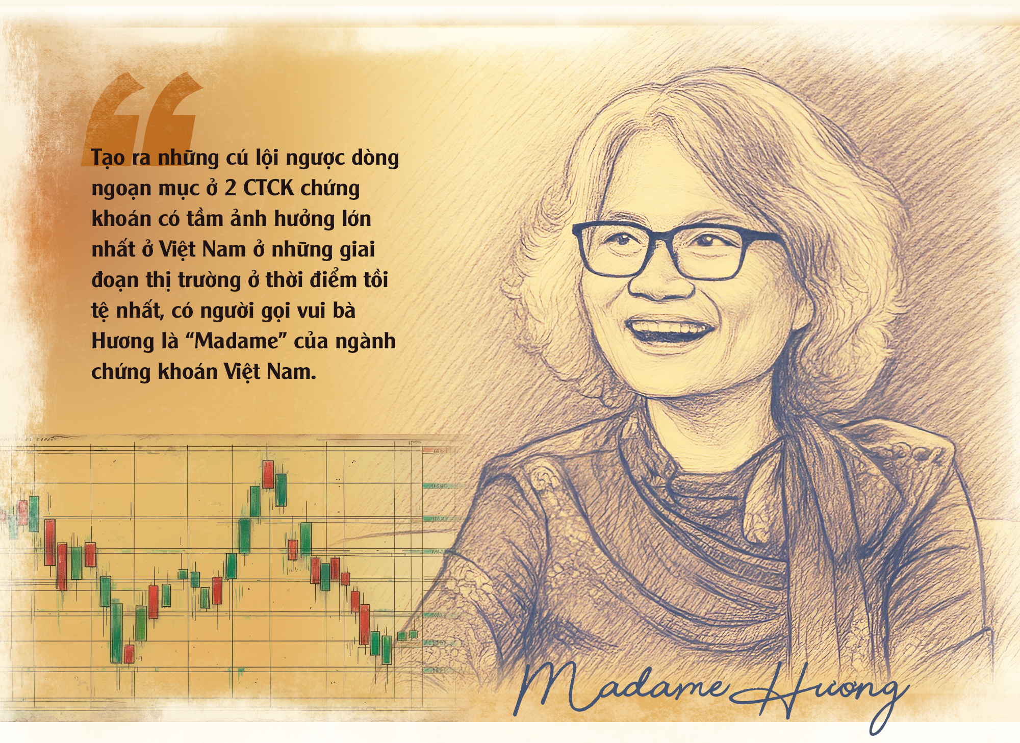 Tạo ra những cú lội ngược dòng ngoạn mục ở 2 CTCK chứng khoán có tầm ảnh hưởng lớn nhất ở Việt Nam ở những giai đoạn thị trường ở thời điểm tồi tệ nhất, có người gọi vui bà Hương là “Madame” của ngành chứng khoán Việt Nam.