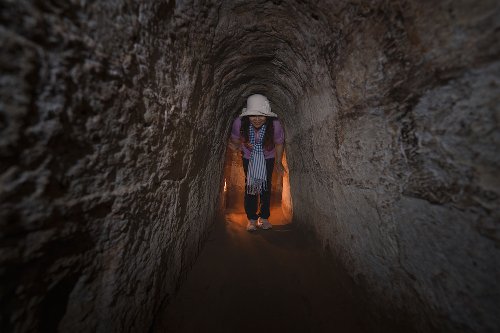 Cách trung tâm TP Hồ Chí Minh khoảng 70km, Địa đạo Củ Chi nổi tiếng với mạng lưới đường hầm kỳ vĩ đan xen như mạch máu chạy ngầm trong lòng đất. Du khách khi đến đây có thể trải nghiệm chui hầm để thấu hiểu phần nào sự khắc nghiệt của cuộc chiến, cũng như tinh thần kiên cường của những chiến sĩ cách mạng năm xưa.