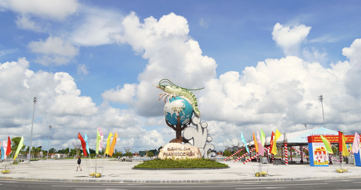 Cà Mau chọn biểu tượng tôm vì đây là loài thủy sản đặc trưng địa phương, đặt tại Quảng trường Phan Ngọc Hiển (ảnh báo Thanh Niên)