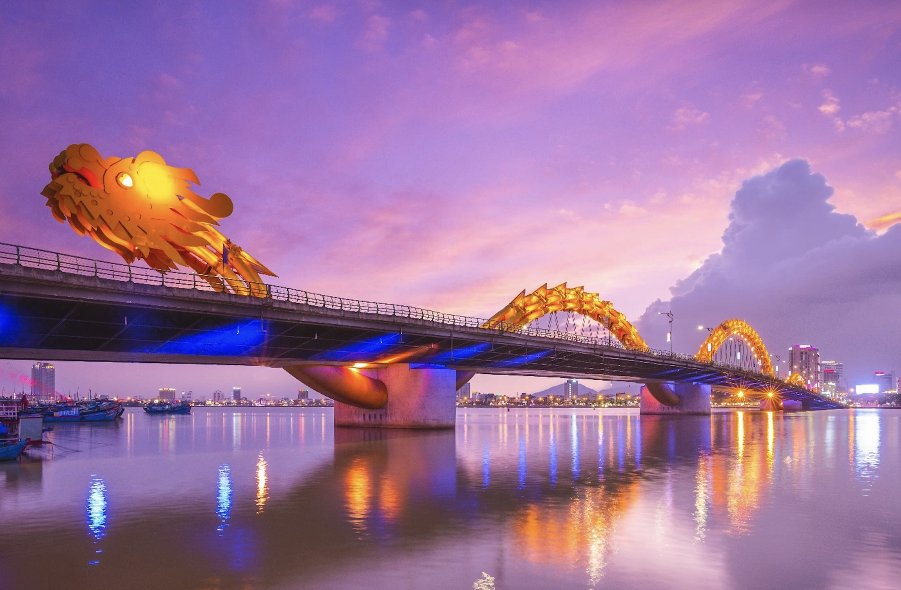Không chỉ là công trình giao thông, Cầu Rồng ở Đà Nẵng cũng trở thành biểu tượng hiện đại của thành phố, nơi du khách trong và ngoài nước vừa check-in vừa trải nghiệm màn trình diễn phun lửa, phun nước độc đáo.
