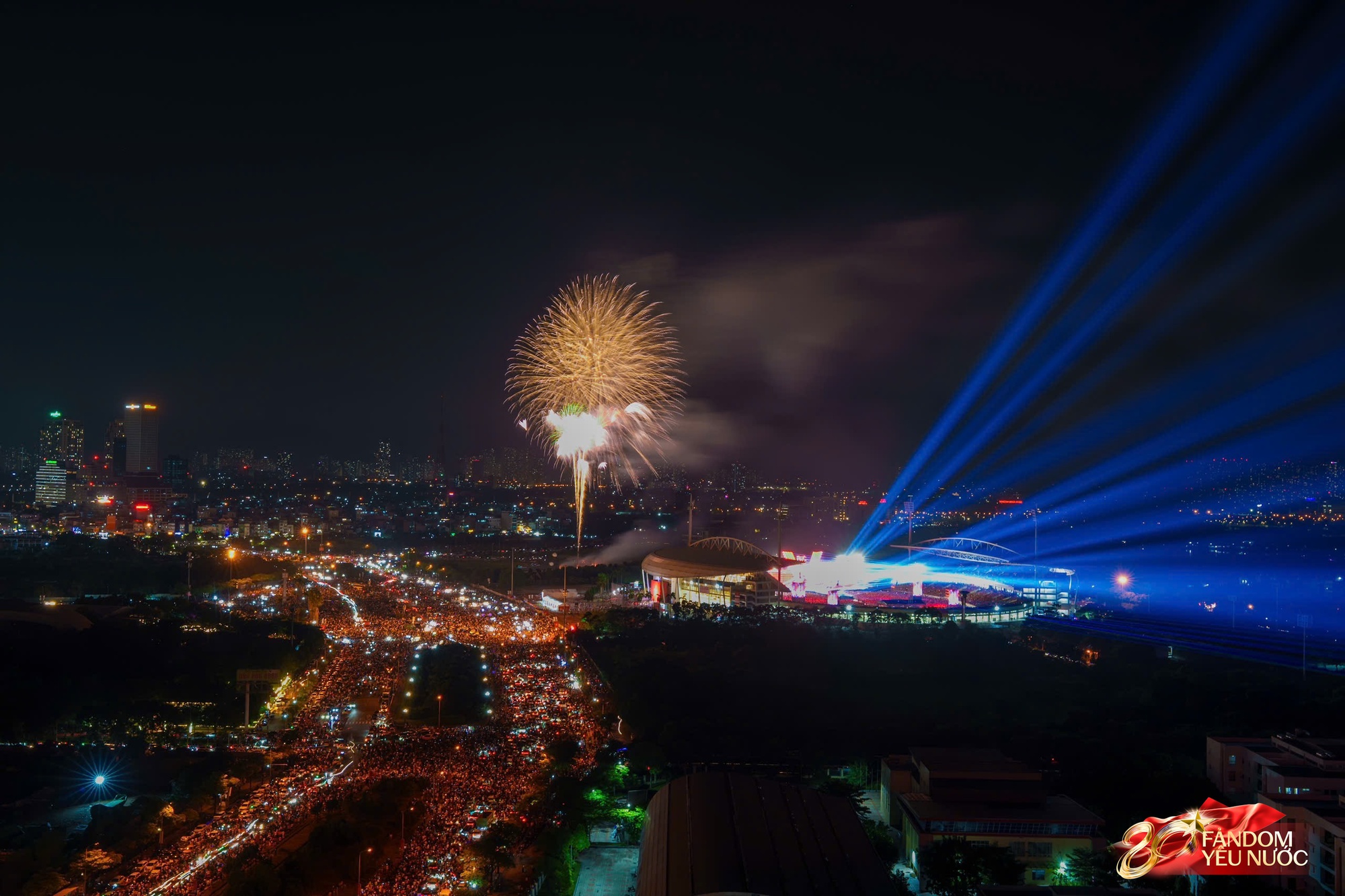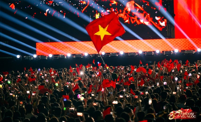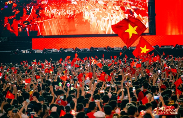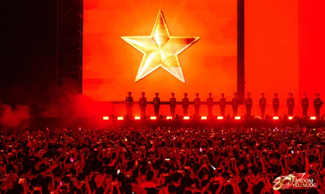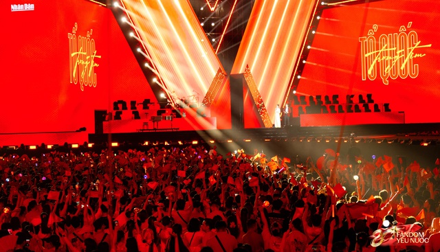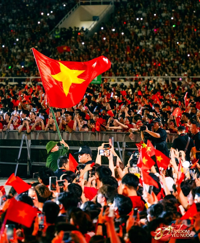 Giữa biển cờ đỏ sao vàng rực rỡ, 50.000 khán giả tại SVĐ Quốc gia Mỹ Đình đã cùng hòa giọng, tạo nên những khoảnh khắc đẹp và tự hào nhất trong đêm Concert Quốc Gia Tổ Quốc Trong Tim.