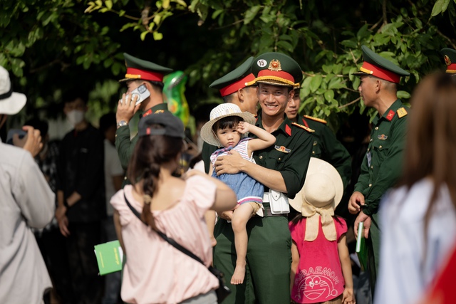 Không còn khoảng cách, chỉ còn nụ cười và sự thân thiện khi người dân xin chụp ảnh cùng những “người hùng trong màu áo lính”.