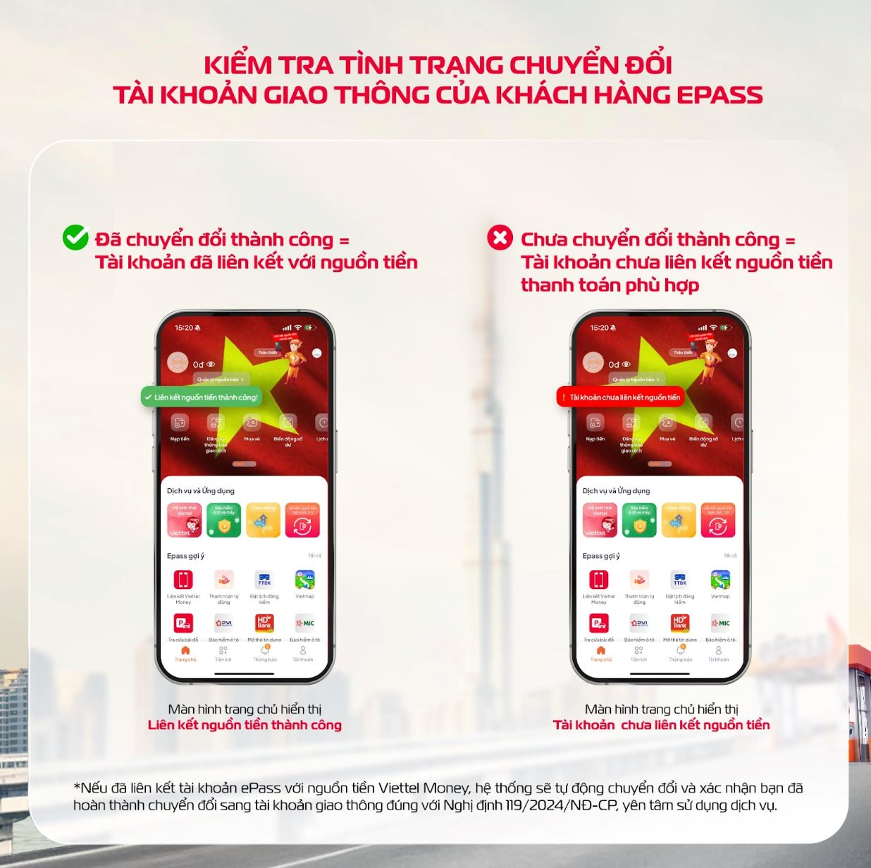 Nhà cung cấp dịch vụ thu phí không dừng ePass và ứng dụng tài chính số Viettel Money đang tích cực hỗ trợ người dân trên toàn quốc trong quá trình chuyển đổi sang tài khoản giao thông.