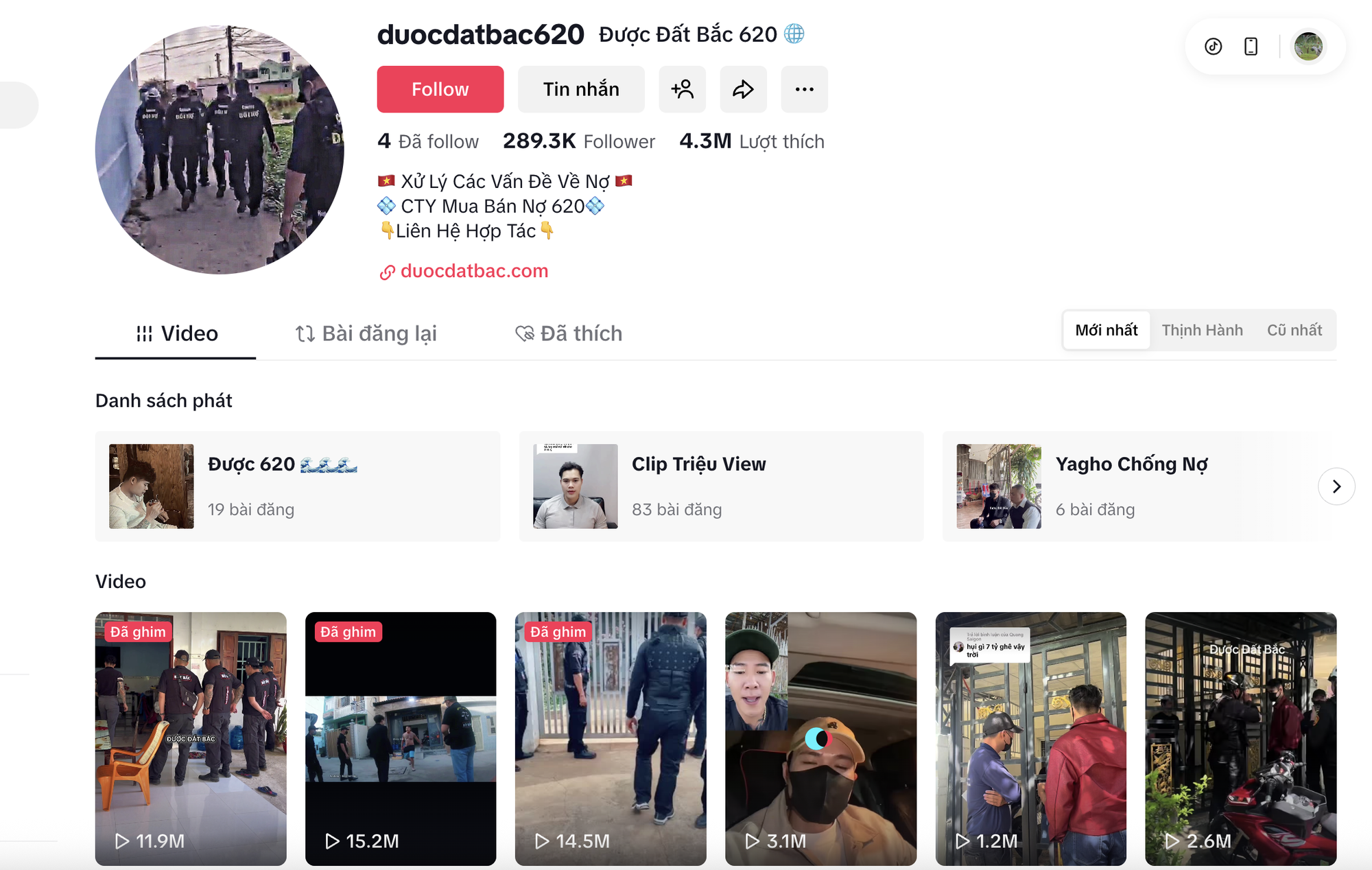 Kênh này đăng hàng loạt clip giới thiệu việc đòi nợ thuê, mua bán nợ với lời lẽ đe doạ, kéo nhiều người đi khắp nơi để đòi những khoản nợ được cho là đã mua lại từ các cá nhân, doanh nghiệp.
