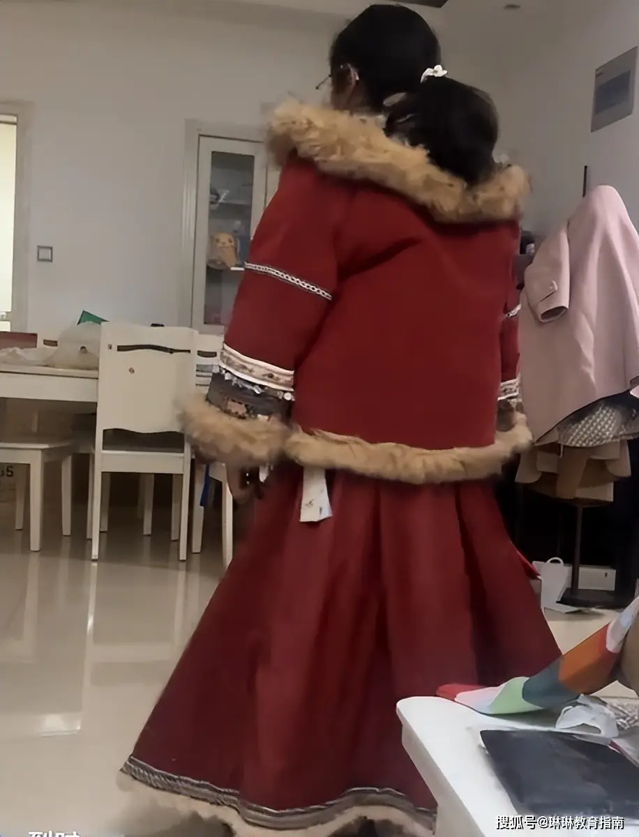 Vậy bộ quần áo ấy rốt cuộc kỳ quặc đến mức nào mà người mẹ phải vội vàng phủi bỏ trách nhiệm với con gái mình? Khi xem video, có thể thấy đó không phải là trang phục quá lố. Chỉ là một bộ váy mang phong cách dân tộc, chất liệu hơi bông xù. Bộ váy dù không phù hợp để mặc hằng ngày, nhưng diện vào dịp Tết cũng không hề phản cảm.