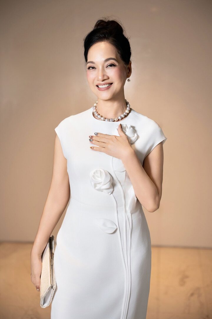 Không bó mình trong khuôn mẫu, trong thiết kế trắng tối giản, chị toát lên vẻ đẹp của sự an nhiên và khí chất của người đã đi qua năm tháng nhưng vẫn luôn biết cách tỏa sáng theo cách riêng.