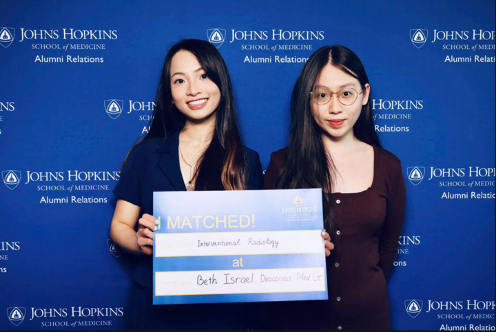 Mai Chi (trái) tham gia “Match Day 2025”, ngày mà các sinh viên y khoa năm cuối biết họ sẽ được phân về bệnh viện nào để theo học nội trú, tại Trường Y Johns Hopkins.