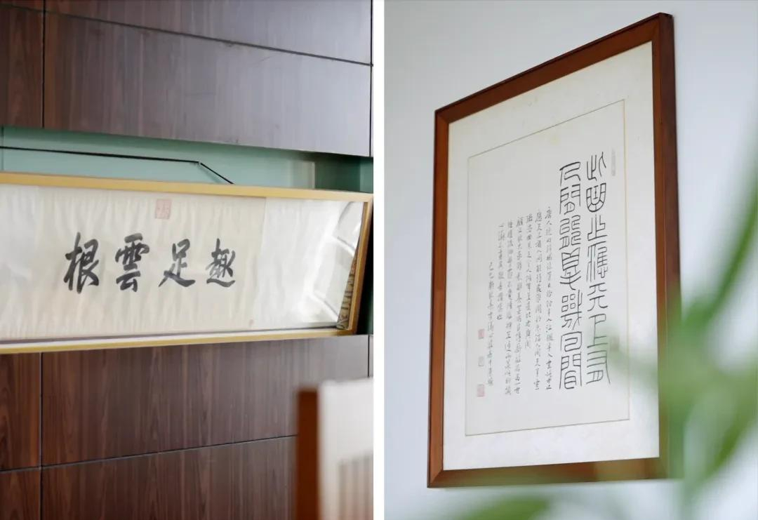 Trên tường là tranh của họa sĩ Phổ Tâm Dã – một bức tranh “chúc thọ” tặng dịp mừng thọ cô ruột bà, bức khác là tranh hoa điểu cô được tặng trước khi sang Mỹ du học, như lời nhắc “đừng quên gốc rễ Trung Hoa”. Trong phòng ăn là bộ bàn ghế phong cách Anh cổ điển, thiết kế bởi Frank Lloyd Wright – một tượng đài của kiến trúc hiện đại. Mỗi món đồ đều có câu chuyện, không món nào mua vì “trông cho sang”.