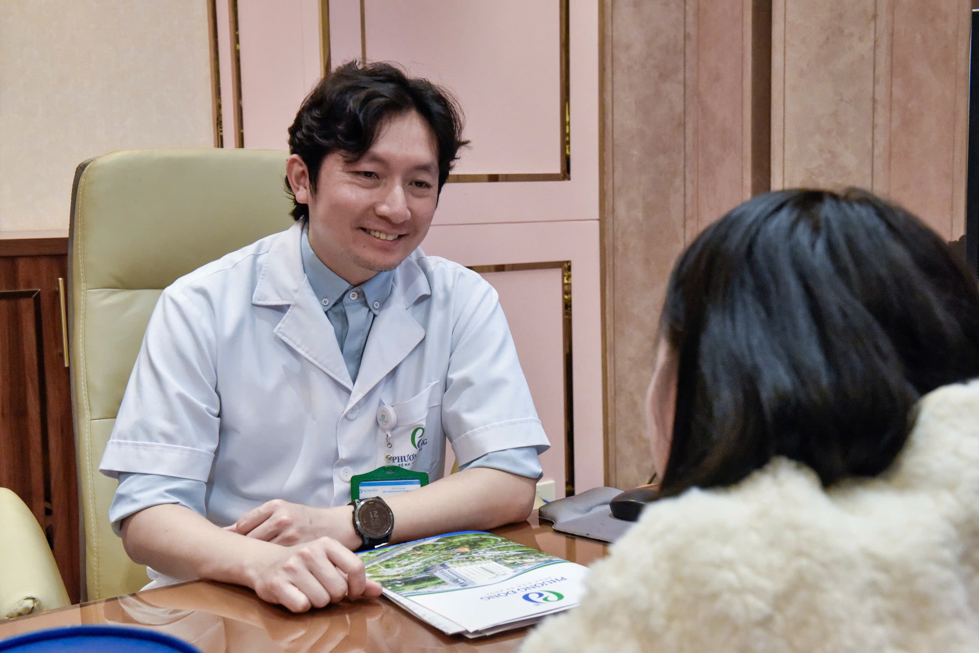 Bác sĩ Đoàn Dư Mạnh đang tư vấn tim mạch cho một trường hợp bệnh nhân trẻ (ảnh PV).