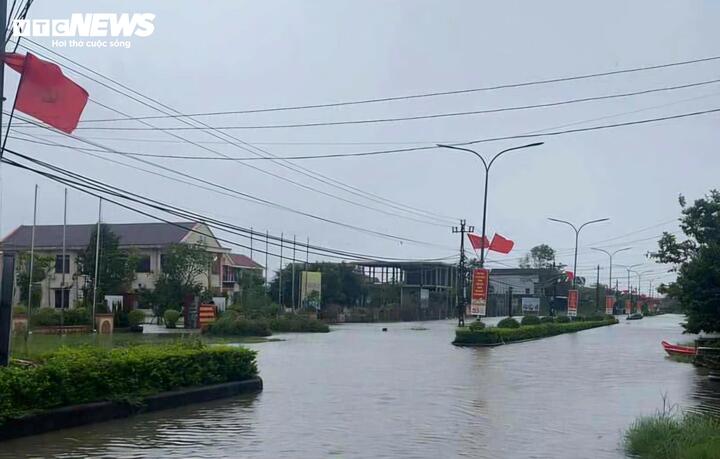 Tuyến đường chính ở phường Hoá Châu (TP Huế) ngập sâu trong nước
