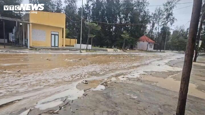Ghi nhận của PV Báo Điện tử VTC News, sáng 22/10 tại khu vực bãi biển Thuận An, sóng biển liên tục vỗ mạnh vào bờ, cuốn theo lượng lớn cát và nước biển tràn sâu vào khu vực ven bờ.
