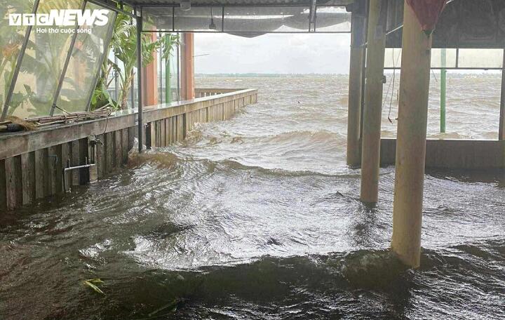 Nước biển dâng cao bắt đầu tràn vào các hàng quán kinh doanh ven biển Thuận An (TP Huế)