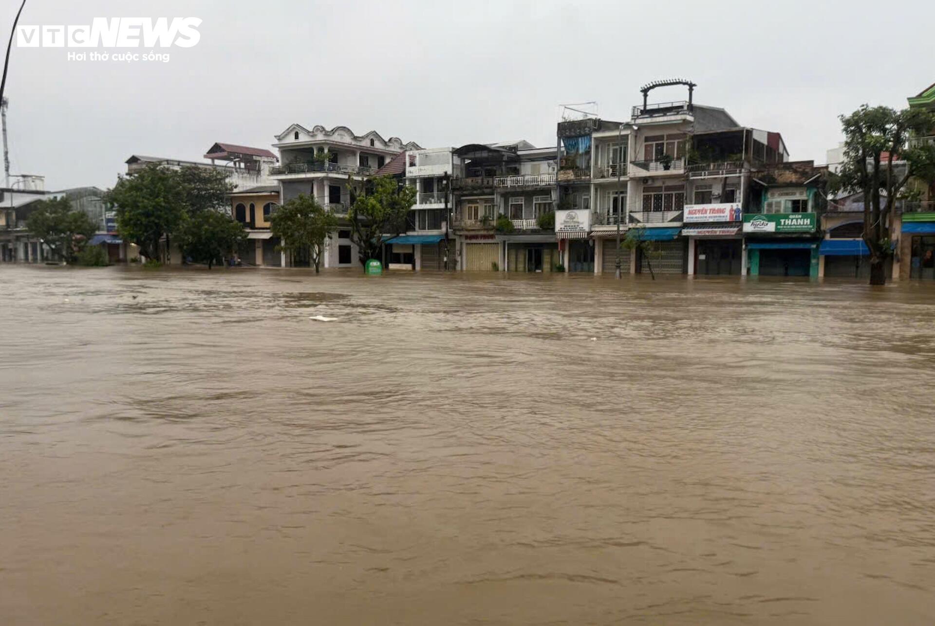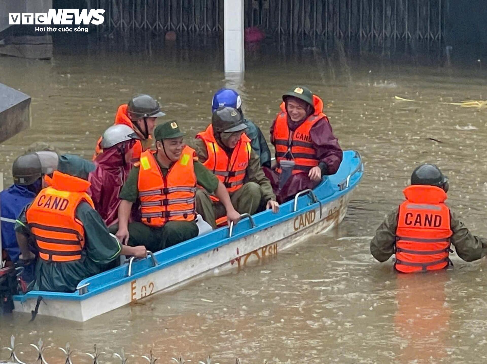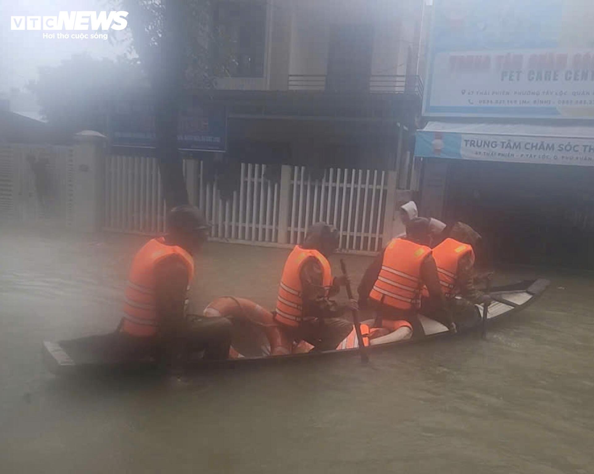 Nước sông Hương và sông Bồ đang ở mức trên báo động 3, vượt đỉnh lũ năm 2020 khiến nhiều nơi ngập sâu trong nước, Công an cấp tập giúp dân