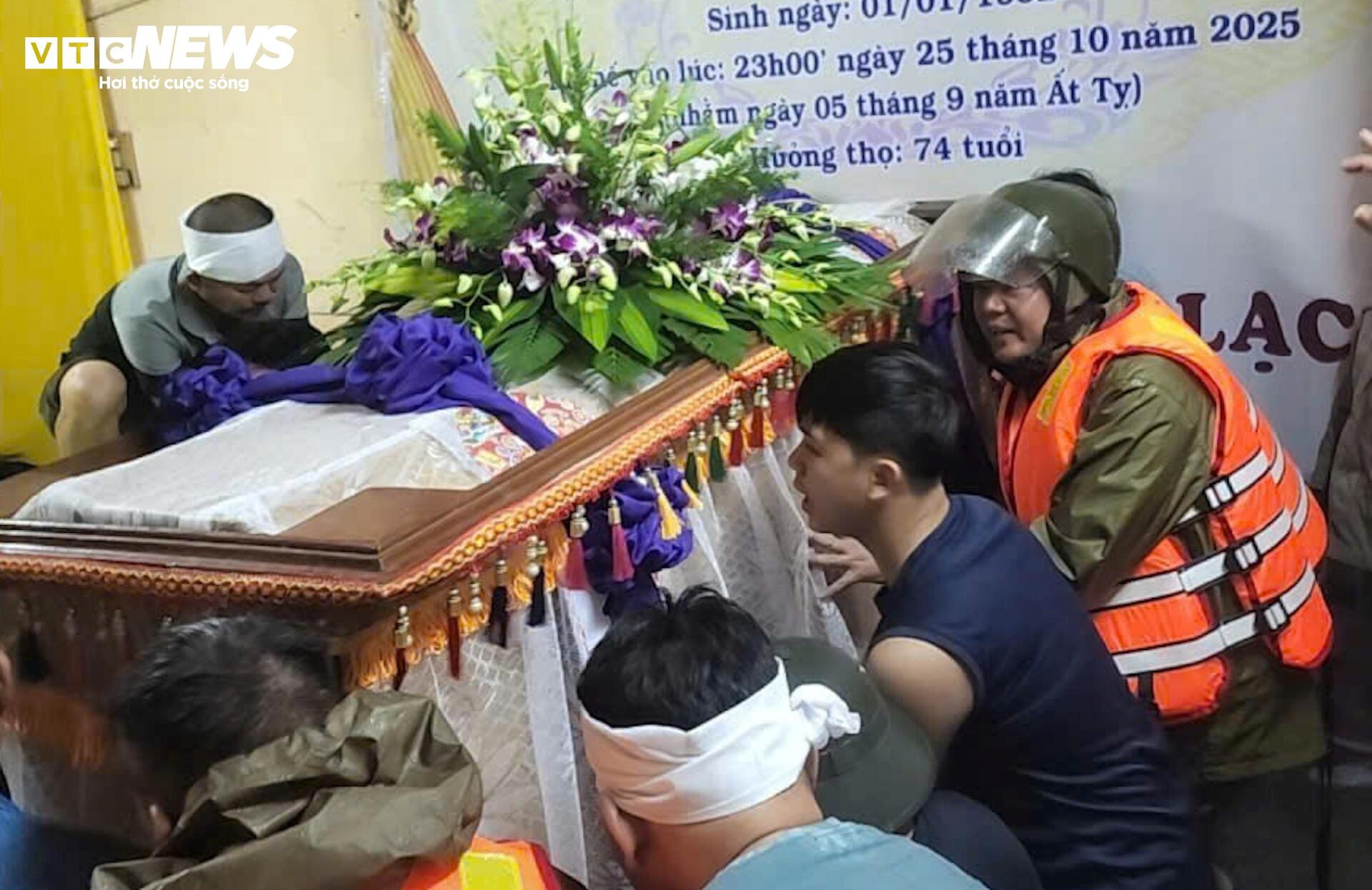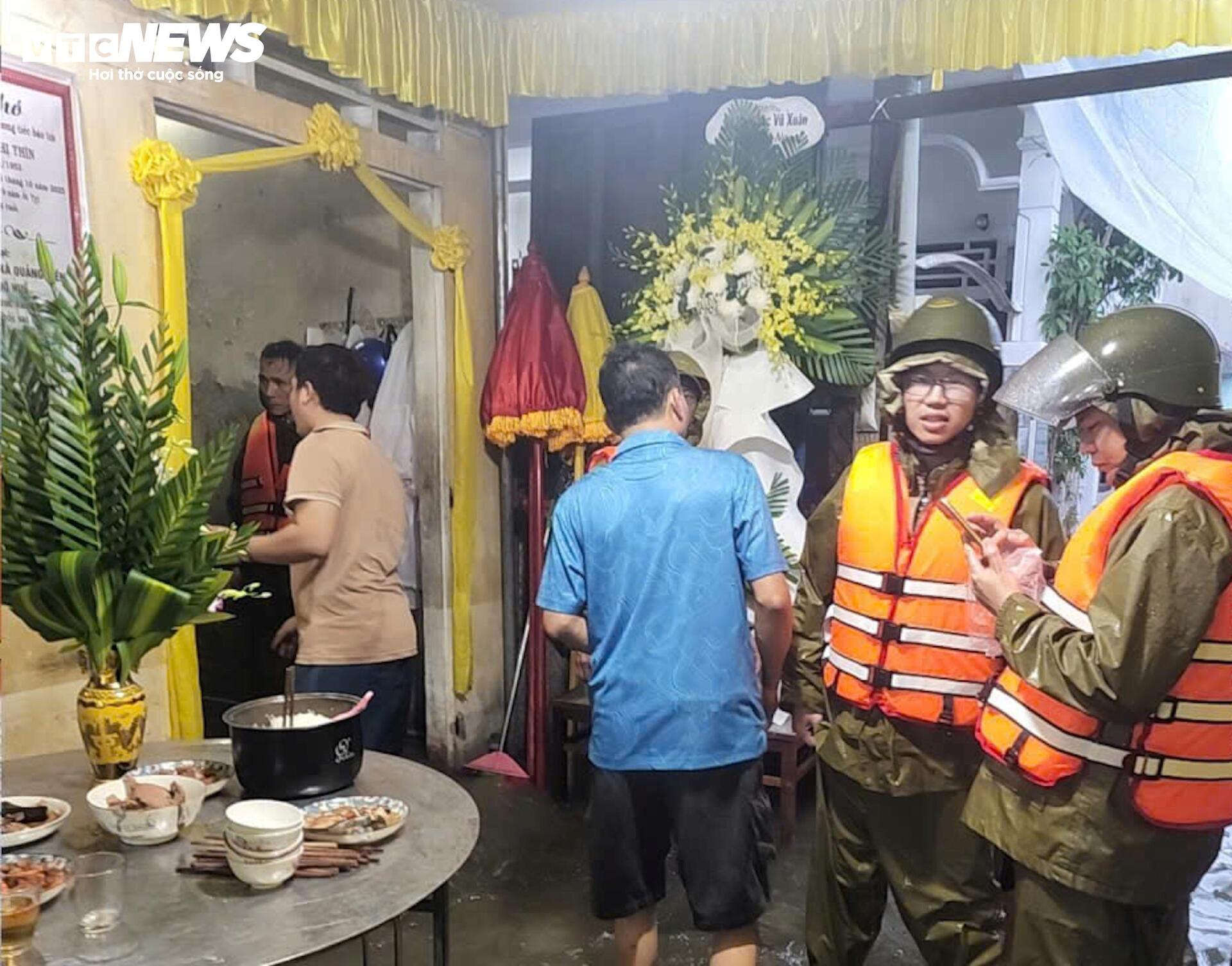 Trước tình hình đó, lực lượng Công an, ANTT tại cơ sở được huy động đến giúp dân kê cao tài sản cũng như quan tài của người quá cố trong lúc chờ đưa đi an táng.