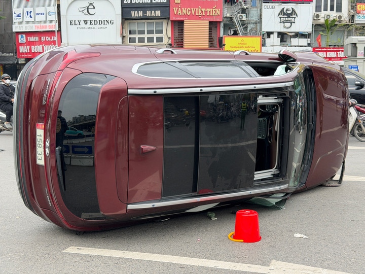 Ô tô lật nghiêng sau tai nạn liên hoàn, tài xế có biểu hiện lạ