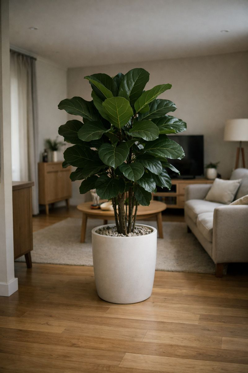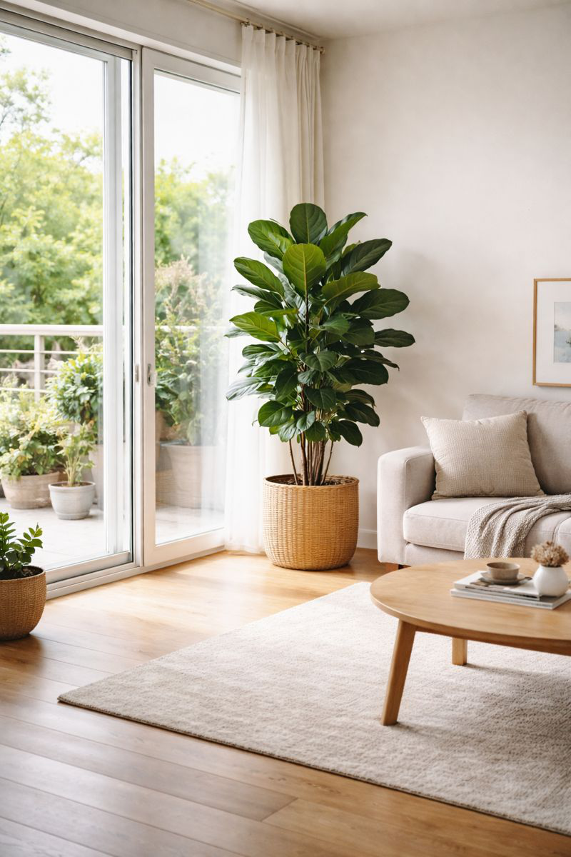 Không phải vì sợ “xui”, mà vì giữa nhà cần thông thoáng, sáng sủa, dễ di chuyển, còn cây lớn thì chiếm chỗ, che sáng, giữ ẩm và làm không gian nặng nề.