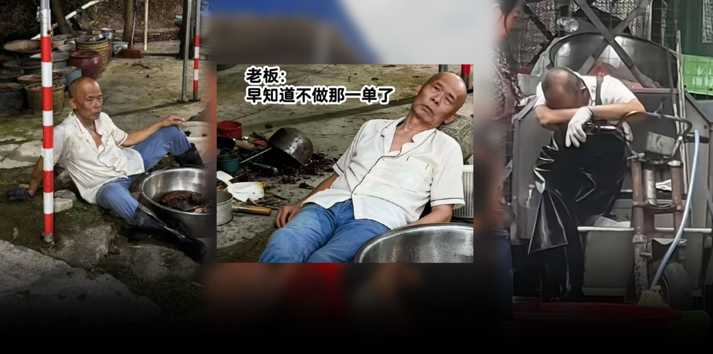 Hình ảnh mệt mỏi của ông chủ quán lẩu gà do phải làm việc quá sức