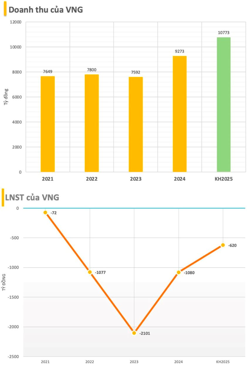Sang năm 2025, VNG đặt mục tiêu doanh thu 10.773 tỷ đồng – cao nhất từ trước đến nay. Doanh nghiệp chính thức đổi tên thành Tập đoàn VNG (VNG Group), xác định tăng trưởng xoay quanh AI và doanh thu từ thị trường quốc tế.