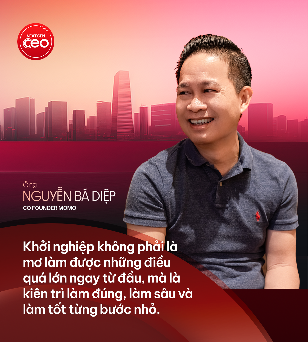 Trong cuộc trò chuyện dài, ông Nguyễn Bá Diệp – Đồng sáng lập, Tập đoàn Công nghệ Tài chính MoMo - không nói về những công thức hào nhoáng, mà chia sẻ những nguyên tắc căn bản nhưng khắc nghiệt: lấy khách hàng làm trung tâm đến tận cùng, học tập suốt đời và không bao giờ coi nhẹ những điều nhỏ nhất.