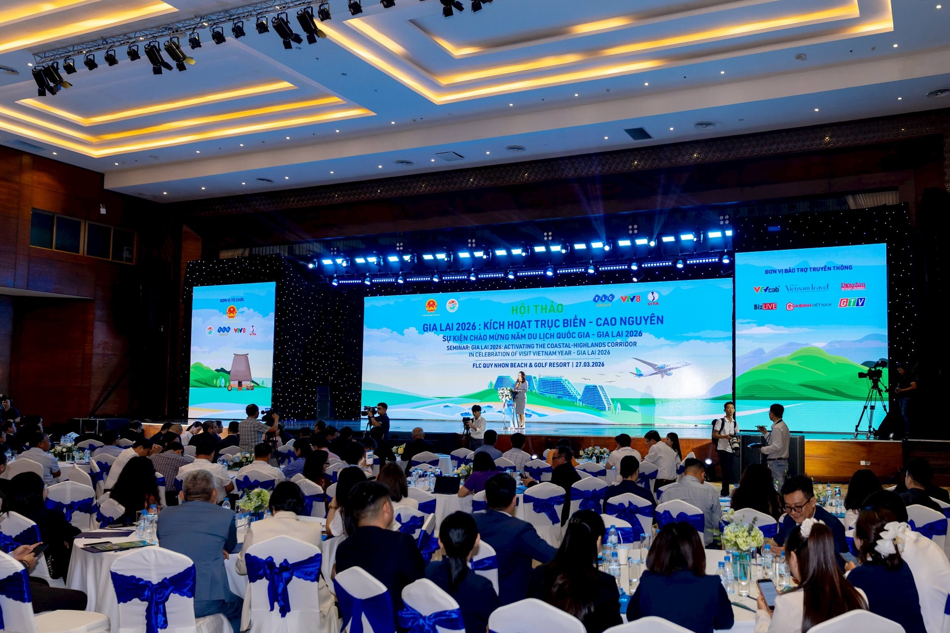 Theo đó, Hội thảo Gia Lai 2026: Kích hoạt trục Biển - Cao nguyên được tổ chức nhằm thảo luận các giải pháp thúc đẩy phát triển du lịch, kích hoạt dòng khách quốc tế và thu hút đầu tư cho khu vực.