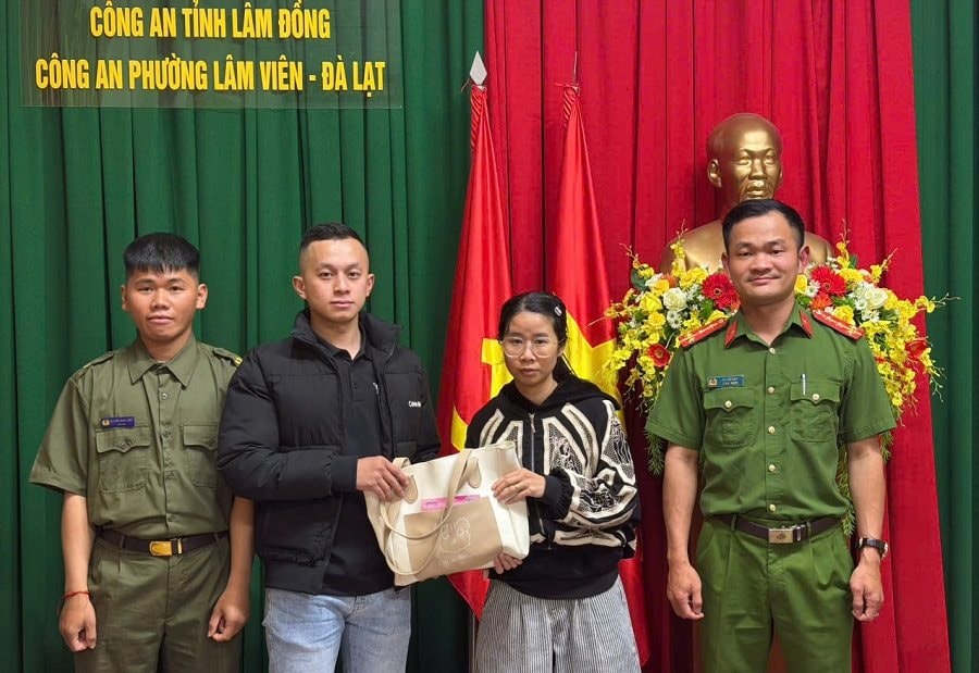 Trước đó, vào khoảng 20h50 cùng ngày, trong quá trình di chuyển trên đường Thánh Mẫu, anh Nguyễn Hồng Vũ (SN 1996, trú tại phường Lâm Viên - Đà Lạt) đã nhặt được một túi xách màu kem. Qua kiểm tra ban đầu, anh phát hiện bên trong có nhiều tài sản và giấy tờ quan trọng. Nhận thức rõ trách nhiệm của công dân, anh Vũ đã nhanh chóng mang toàn bộ tài sản đến trình báo, giao nộp tại Công an phường để nhờ hỗ trợ tìm người bị mất.