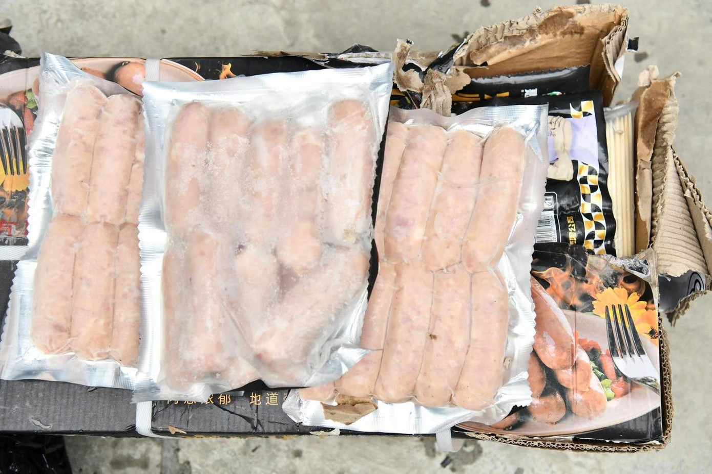 Trên bao bì toàn bộ 5,2 tấn lạp xưởng đều in chữ nước ngoài, không có hóa đơn, chứng từ.