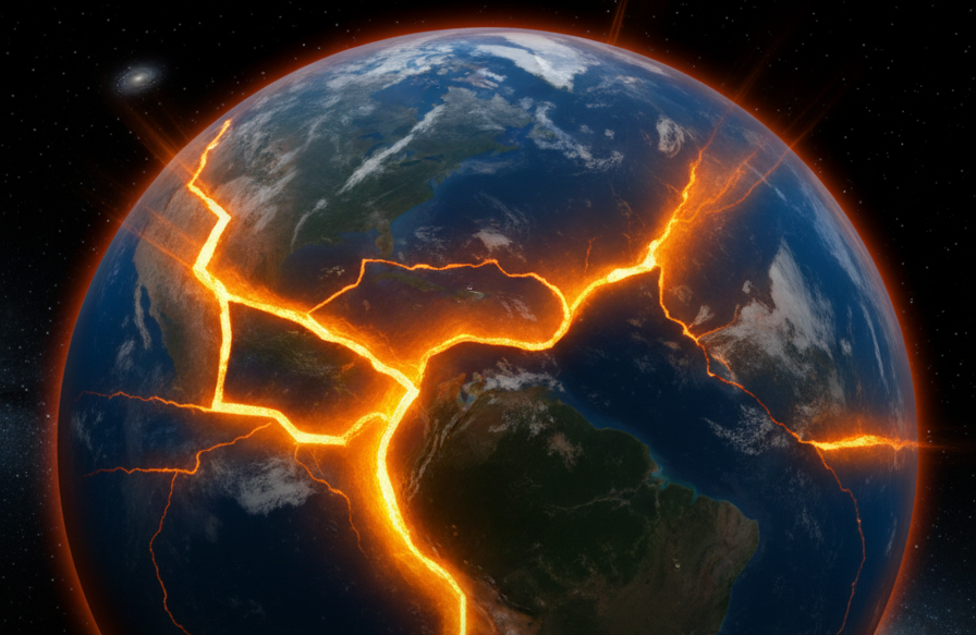 Vỏ Trái Đất được tạo nên bởi rất nhiều mảng kiến tạo - Minh họa AI: Thu Anh