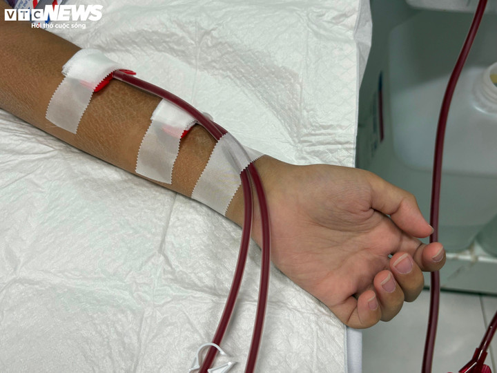 Mỗi buổi chạy thận, hai mẹ con chị Oanh xuất phát từ 5h sáng, đến bệnh viện lúc 8h để kịp gắn máy. Đến khoảng 11h trưa chạy thận xong, chị và con trai nghỉ ngơi, ăn uống cho lại sức rồi đón xe buýt về nhà trọ.