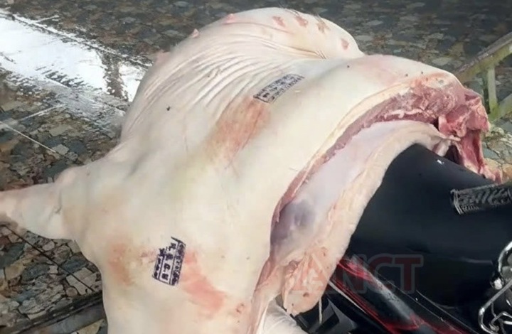 Trước đó, lực lượng chức năng phối hợp kiểm tra cơ sở giết mổ gia súc Đặng Phú Tỷ (xã Vĩnh Viễn, TP Cần Thơ) và phát hiện một con heo đã bị giết mổ, có dấu kiểm dịch, chuẩn bị được vận chuyển ra chợ Vĩnh Viễn tiêu thụ, với trọng lượng khoảng 120kg.