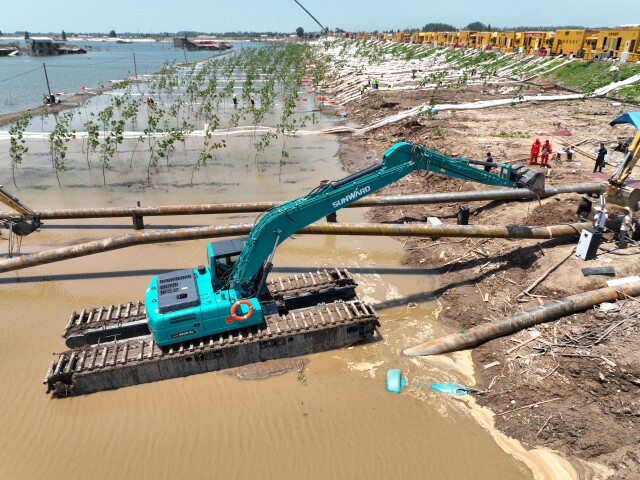 Trong thực tế, thiết bị đã được triển khai tại nhiều dự án và nhiệm vụ cứu hộ. Tại một dự án nạo vét nhánh sông Dương Tử ở tỉnh Hồ Bắc, máy xúc lội nước đã vượt qua dòng chảy mạnh, tiếp cận trực tiếp khu vực bị vỡ và thực hiện công tác bịt kín mà không cần phương tiện hỗ trợ. Tại các khu vực đất ngập nước ở Vân Nam, áp lực tác động lên mặt đất của máy được giảm xuống còn 0,3 MPa, cho phép vận hành ổn định trên nền đất than bùn mềm, với hiệu suất nạo vét được ghi nhận cao hơn đáng kể so với thiết bị truyền thống.
