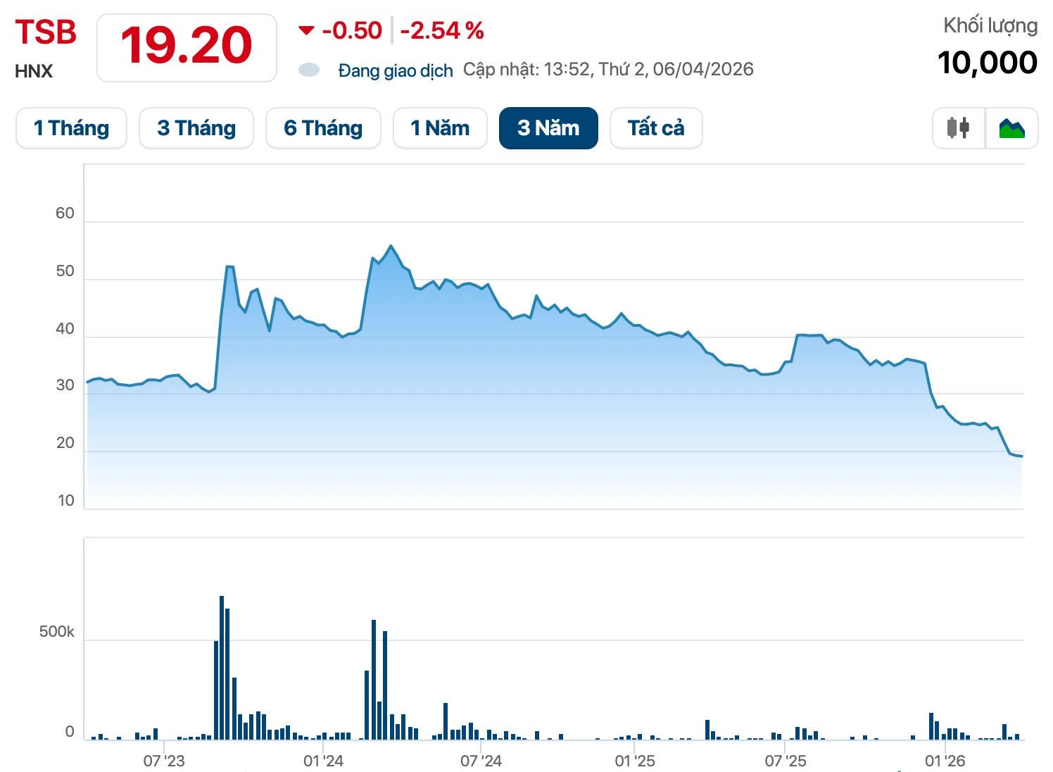 Trên sàn chứng khoán, cổ phiếu TSB của Tibaco đã giảm mạnh sau thông tin loạt lãnh đạo bị khởi tố và hiện đang giao dịch quanh vùng giá thấp nhất 3 năm. Vốn hóa thị trường tương ứng còn gần 130 tỷ đồng.
