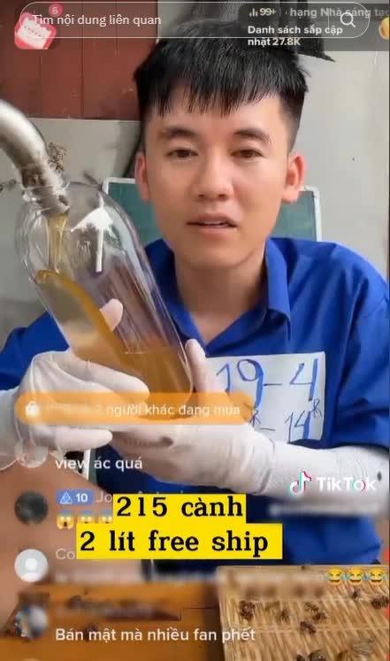 Trong số đó, Hưng Vlog - một YouTuber, Tiktoker nổi tiếng cũng lấn sân vào chợ mạng và bán một số mặt hàng trên TikTok bao gồm cả "mật ong hoa vải".