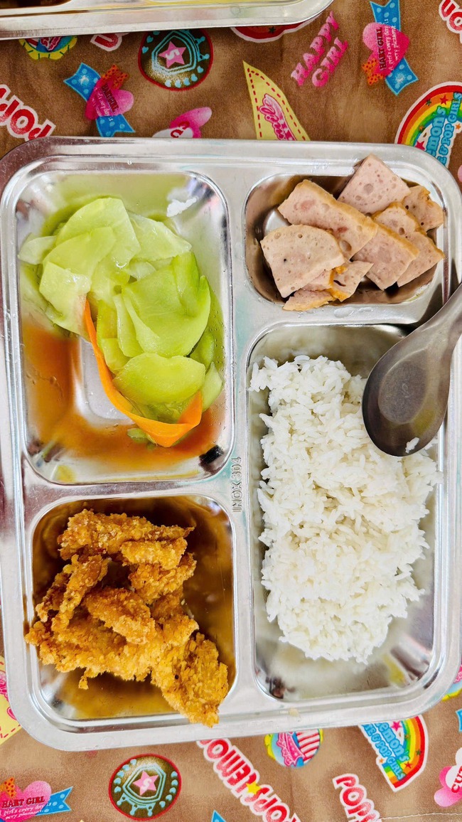 "Suất ăn con em đây. Mỗi ngày cô giáo đều gửi cho phụ huynh xem. Đi học ăn ngon hơn ở nhà".
