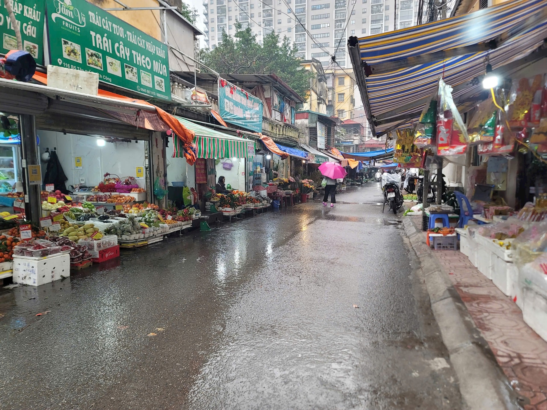 Các hộ kinh doanh tại các trục đường trong khu tập thể Thành Công được sắp xếp lại ngăn nắp, sáng 31-1. Ảnh: MH