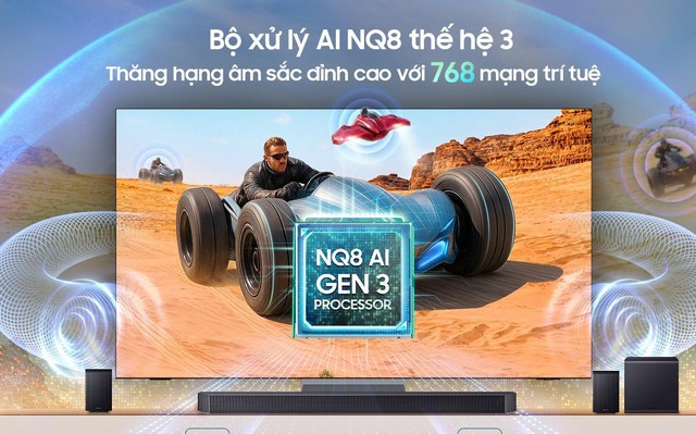 Trải nghiệm thông minh trên Samsung AI TV mở ra cùng bộ xử lý AI NQ8 thế hệ 3 với 768 mạng trí tuệ (tăng 1,5 lần so với thế hệ trước) trên TV Neo QLED 8K, cho khả năng nâng cấp hình ảnh lên chuẩn gần 8K tới 90% so với nội dung gốc, bất kể chất lượng đầu vào. Cùng với đó, dòng Neo QLED 4K và OLED cũng được trang bị bộ xử lý AI NQ4 thế hệ 3, trong khi dòng QLED cũng được nâng cấp với bộ xử lý AI. Samsung cũng áp dụng công nghệ Color Booster Pro sử dụng AI để phân tích từng khung hình, tái tạo màu sắc trung thực, sống động cùng chế độ Tùy chỉnh bằng AI giúp tự động nhận diện nội dung để tối ưu hóa cài đặt phù hợp. Ngay cả âm thanh cũng được xử lý bằng AI thông qua công nghệ Adaptive Sound Pro, có khả năng phân tích chi tiết từng cảnh quay, từ đó tinh chỉnh âm thanh chính xác.