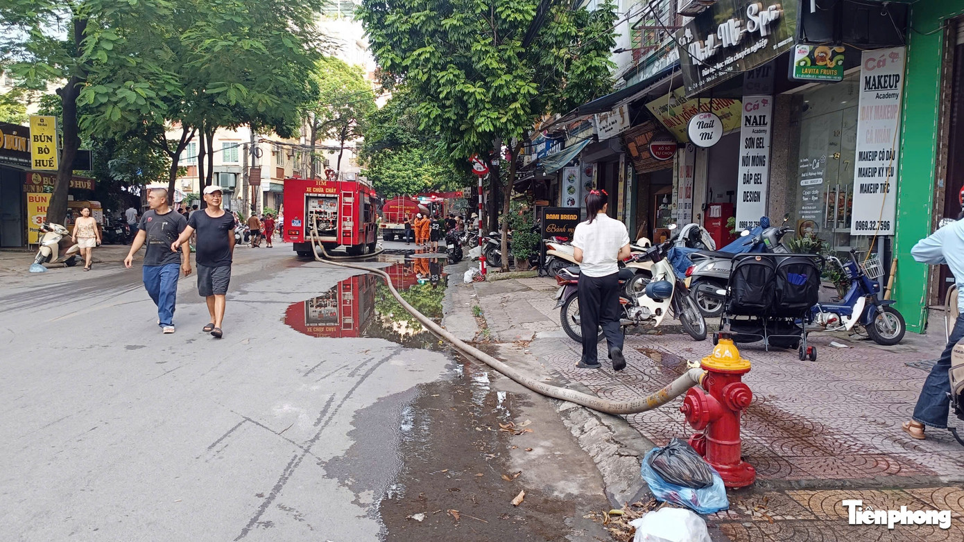 Ngay sau đó, người dân đã báo cho lực lượng chức năng. 2 xe chữa cháy, xe bồn, cùng nhiều cán bộ, chiến sĩ Cảnh sát PCCC&CNCH Hà Nội được điều động đến hiện trường dập lửa.