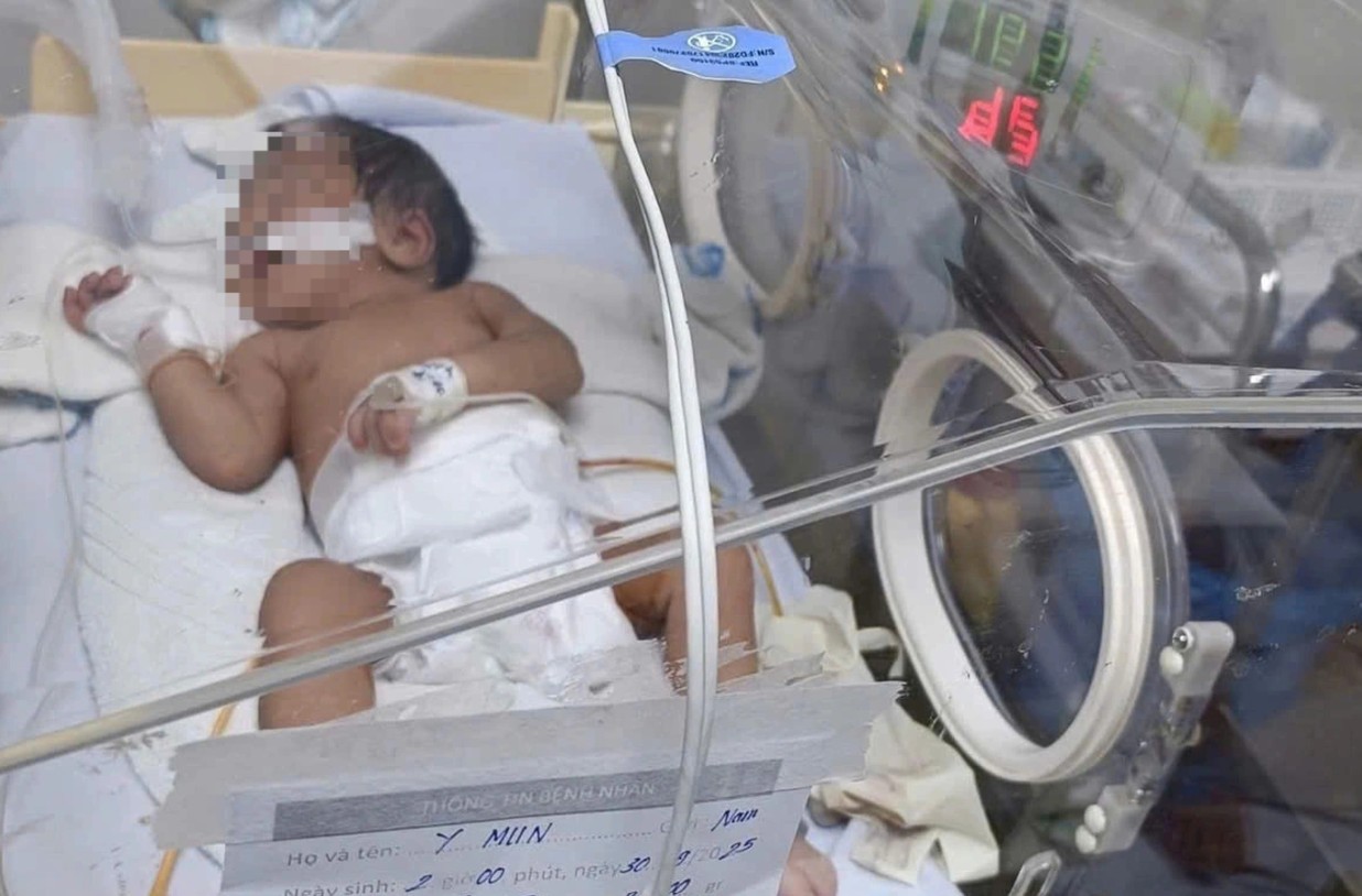 Theo thông tin từ bệnh viện, bệnh nhi là bé Y Mun, sinh ngày 30/9 tại bản A Ky, xã Thượng Trạch, tỉnh Quảng Trị. Do điều kiện kinh tế khó khăn, người mẹ sinh thường tại nhà mà không có hỗ trợ y tế. Sau khi sinh, gia đình đã dùng liềm để cắt rốn cho bé, gây tổn thương vùng bìu.