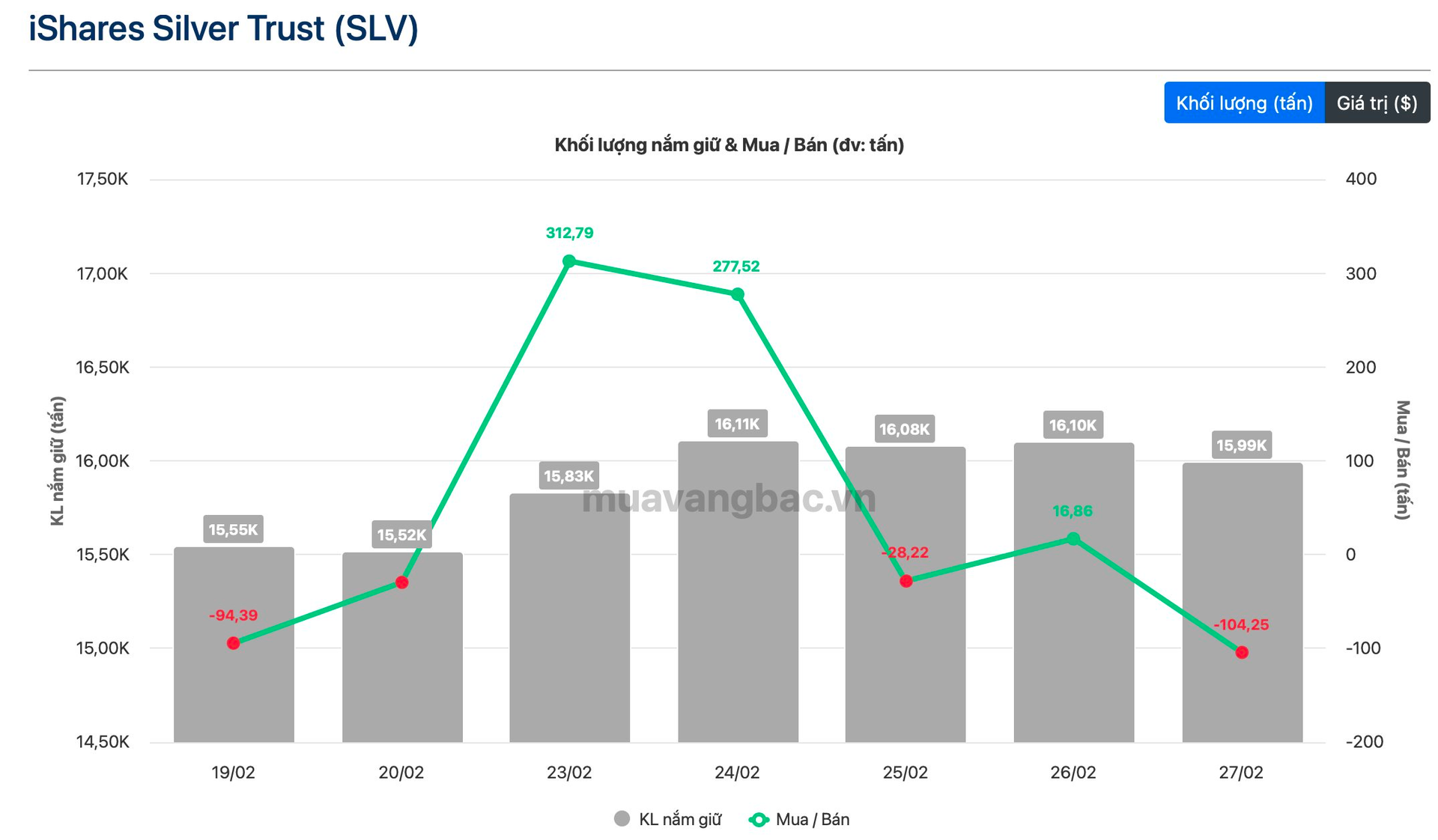 Tính đến cuối tháng 2, quỹ còn nắm gần 16.000 tấn bạc, tương đương quy mô khoảng hơn 46 tỷ USD.