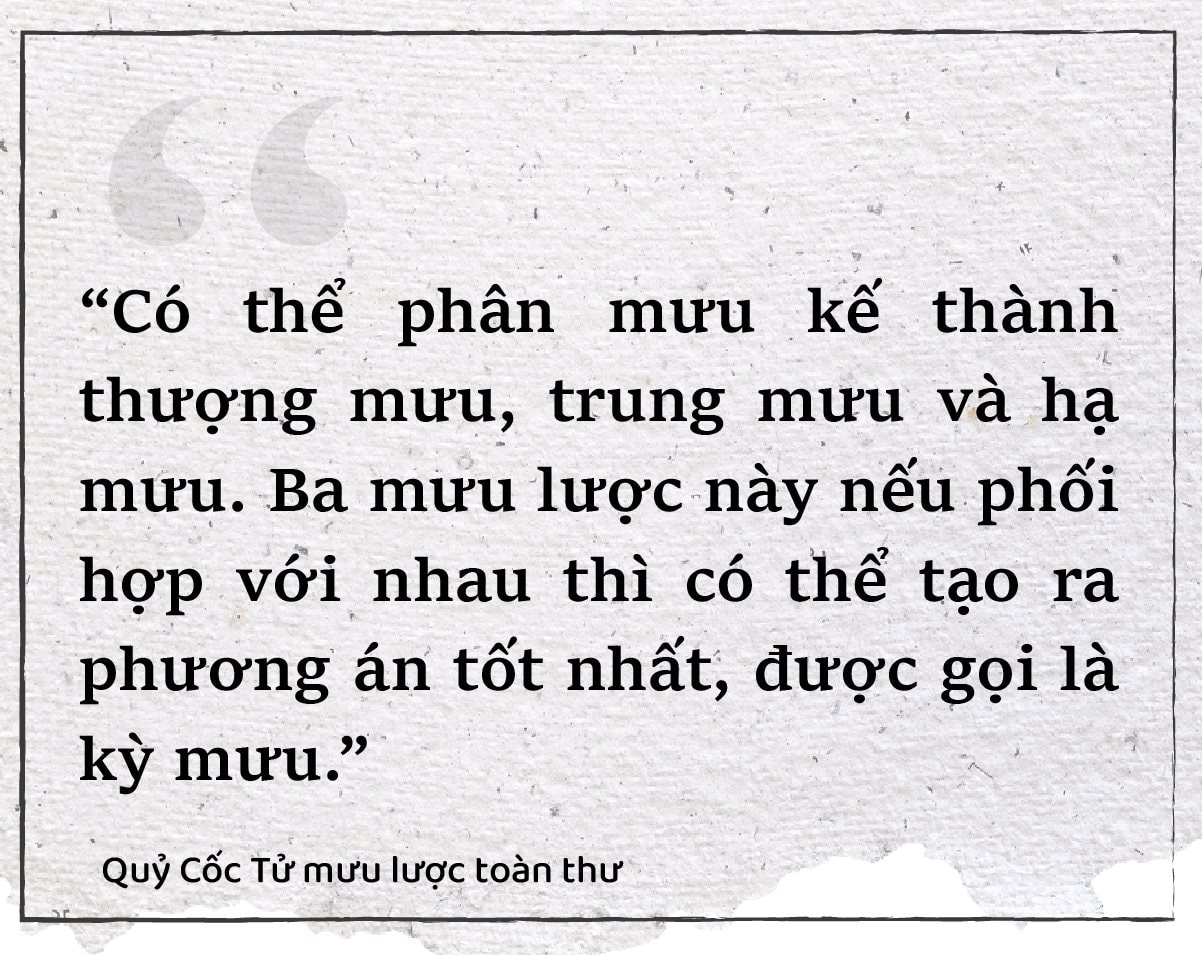 Từ nguyên tắc đó, Quỷ Cốc Tử chia mưu lược thành ba bậc. Thượng sách là kế vô hình, khiến việc thành công mà không để lại dấu vết. Trung sách là kế hữu hình, mang lại kết quả mong muốn nhưng vẫn để lại dấu vết, thường được ca ngợi. Hạ sách là kế bất đắc dĩ, giải quyết tình huống khó khăn nhưng hao tổn nhiều nhân lực và vật lực. Người giỏi mưu cần biết kết hợp cả ba bậc để tạo nên giải pháp chu toàn.