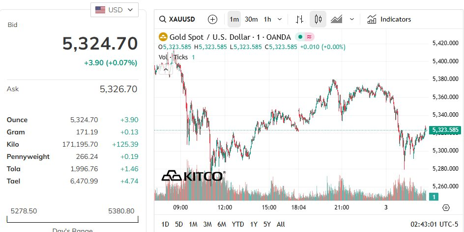 Động thái “đứng ngoài” của SPDR diễn ra trong bối cảnh giá vàng thế giới điều chỉnh nhẹ về khoảng 5.324 USD/oz, thấp hơn so với mức đỉnh trong phiên giao dịch đêm qua là 5.419 USD/oz.