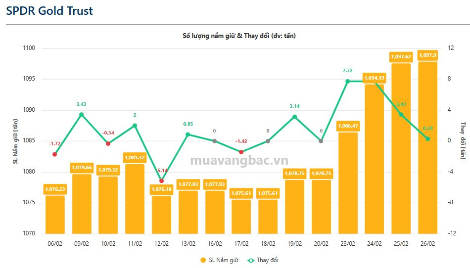 Hiện tại, quỹ này đang nắm giữ tổng cộng 1.097,9 tấn.